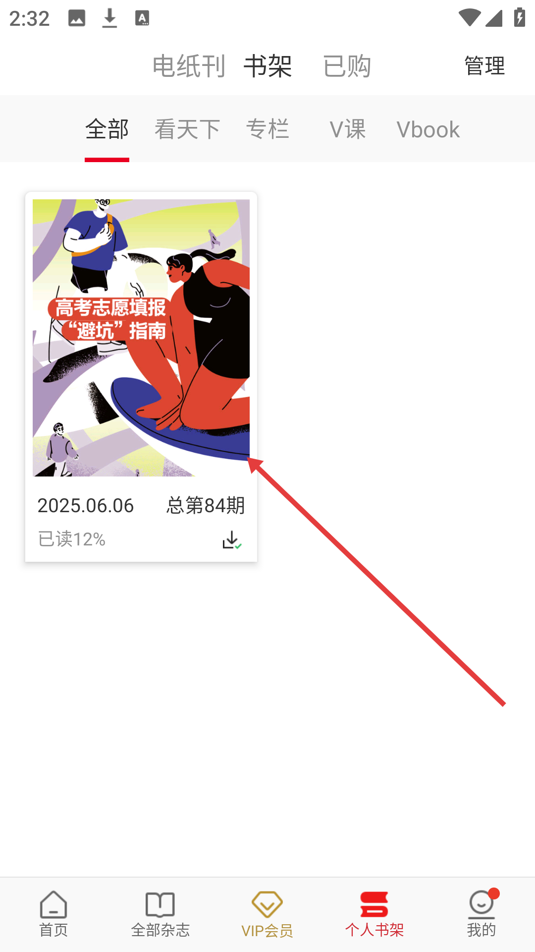 在個人書架頁面找到需要操作的期刊并點擊,即可進入該期刊的目錄頁面。