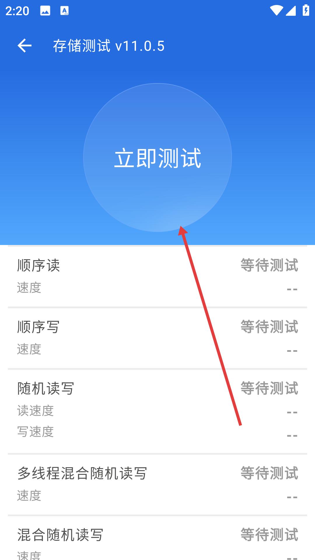 在存儲測試頁面點擊【立即測試】按鈕,即可啟動存儲性能測試。