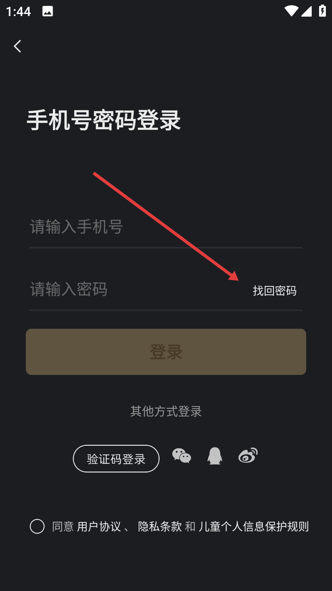 在密碼登錄界面點擊【找回密碼】按鈕,即可進入密碼找回頁面。