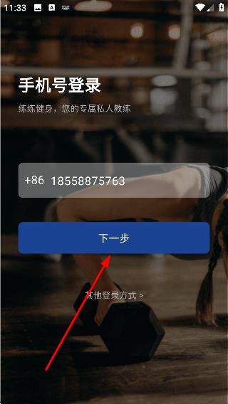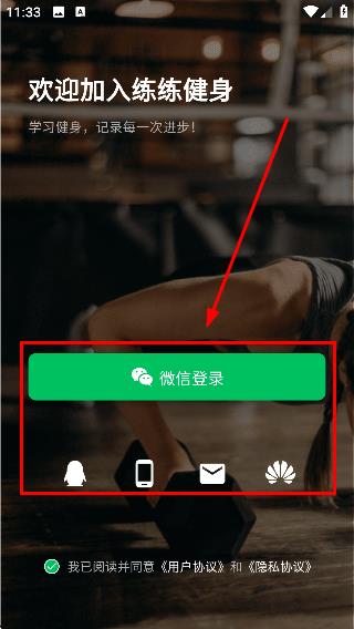 在練練健身的歡迎界面挑選登錄方式,比如【微信登錄】之類的選項(xiàng),接著進(jìn)入手機(jī)號登錄的界面。
