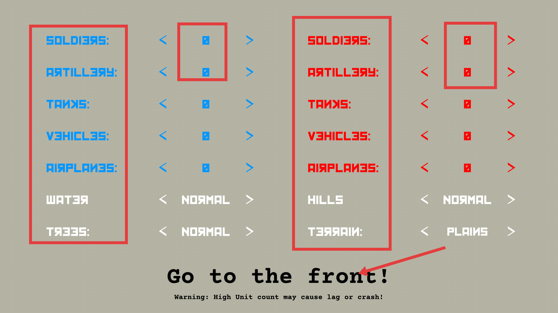 在完成士兵、火炮、坦克等作戰單位以及地形的配置后,點擊【Go-to-the-front!】按鈕,即可進入前線區域開啟戰斗。