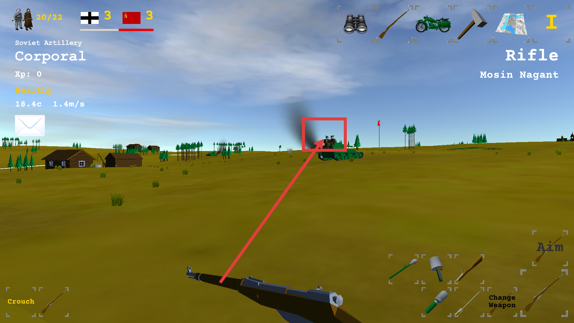 低模3D像素風格與二戰主題高度契合,通過簡潔的建模手法還原出戰壕、碉堡、軍用載具等經典戰場元素,整體色彩搭配強化了戰爭氛圍的渲染,帶來舒適且協調的視覺感受。