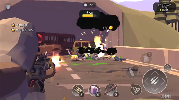 還能直接點擊右側的道具,比如手雷,就能直接炸飛不少僵尸,傷害特別高。