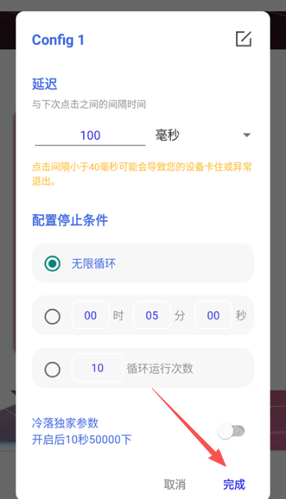 當(dāng)設(shè)置的間隔小于40毫秒時,它常常會出現(xiàn)崩潰情況。我們建議您在較短時間內(nèi)進行快速點擊操作。