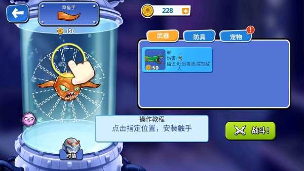 點擊對應(yīng)位置,安裝新觸手以增強戰(zhàn)斗力!