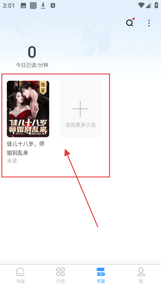 回到書架界面,就能看到剛添加的《徒兒十八歲,師姐別亂來》,隨時都能閱讀啦。