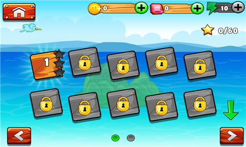 6.關卡2中,球球的炮臺明顯離方塊遠了,難度也提升了。我們需要長按瞄準目標才能消滅方塊。