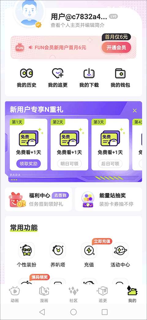 點(diǎn)擊【我的界面】進(jìn)入“福利中心”選項;