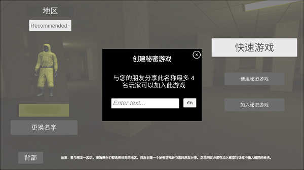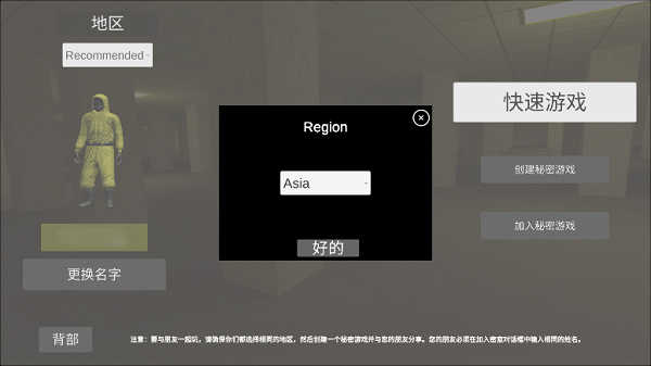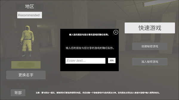 8、選擇相同地圖、地區后,輸入相同的房間名稱。
