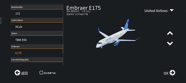 2、左側是飛機型號,右側上下按鈕可以選擇切換飛行型號,選擇完點擊“OK”。