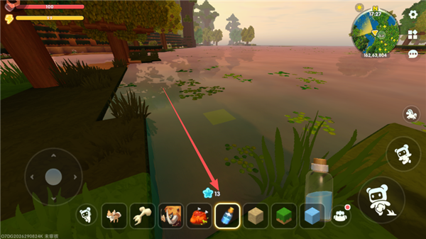 制作完小玻璃瓶后,先點擊該物品,接著走到水域附近,再點擊水域進行使用。