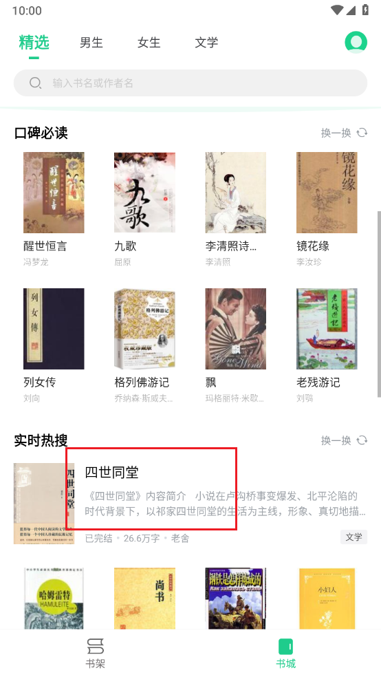 打開(kāi)追書大師,進(jìn)入書城,選擇喜歡的小說(shuō)資源。