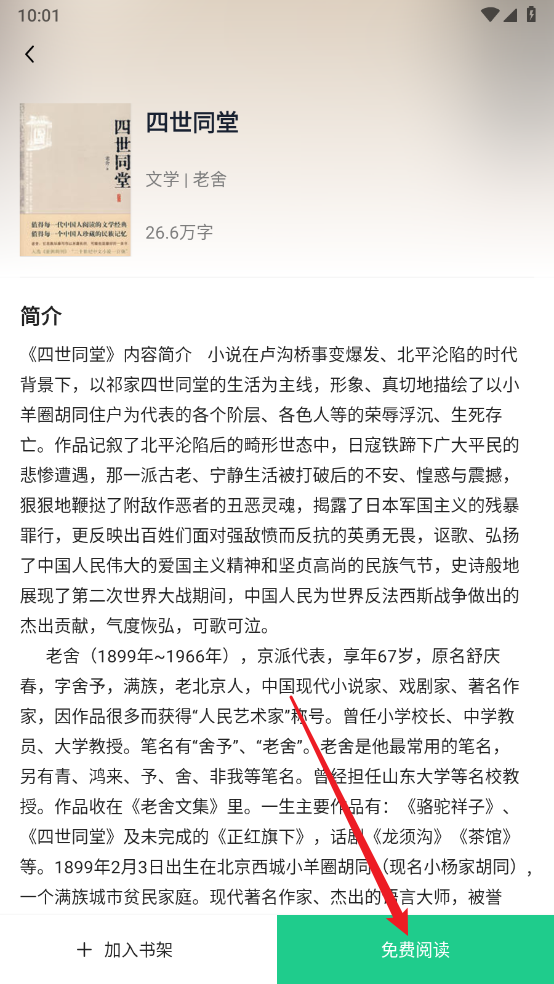 進(jìn)入小說(shuō)詳情頁(yè),點(diǎn)擊"免費(fèi)閱讀"。