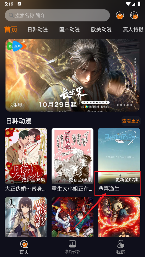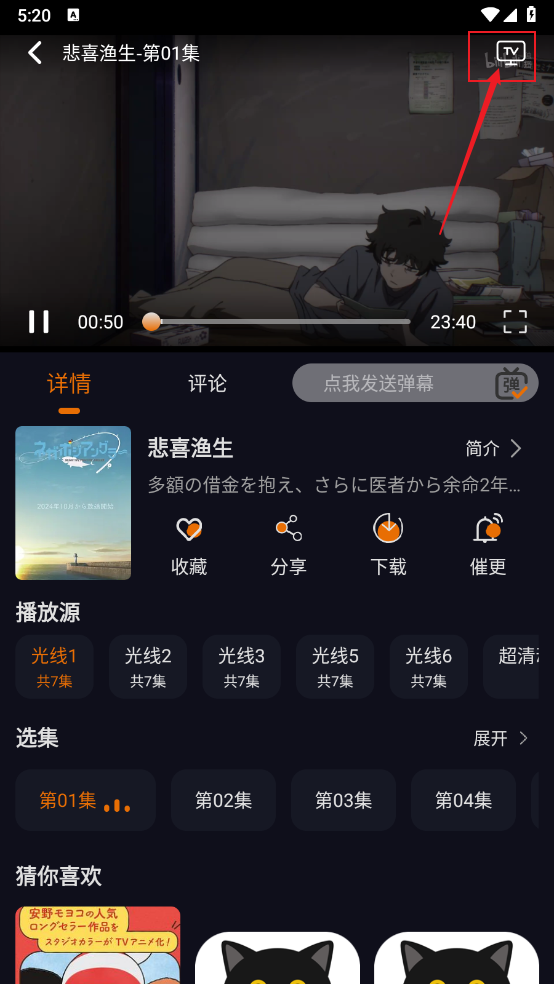 先在本站安裝軟件,在首頁選擇需要投屏的動漫進入。