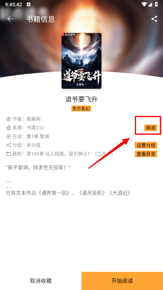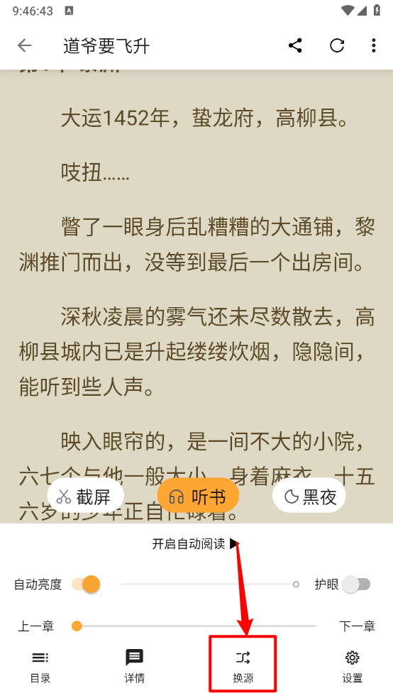 同時還可以在閱讀界面呼出菜單,點擊底部"換源"。