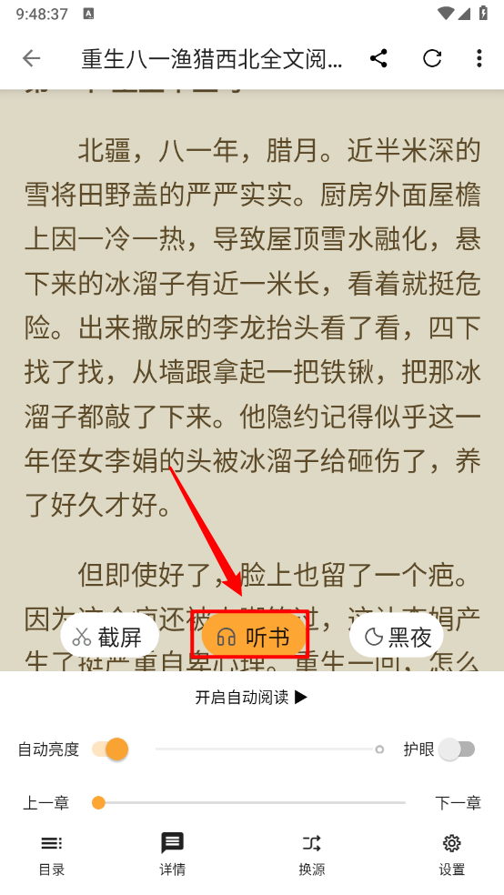 然后點擊中間區域呼出菜單,點擊"聽書"。