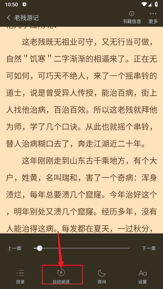 然后點擊中間區(qū)域呼出菜單,點擊"自動閱讀"。