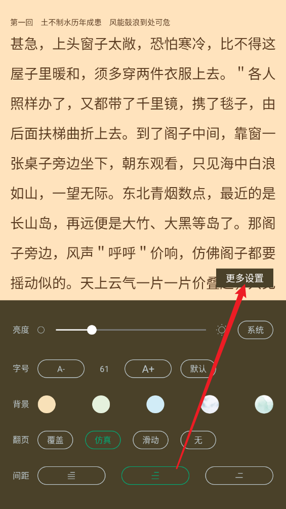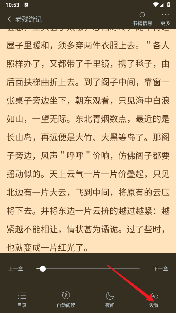 在小說閱讀頁面,點擊右下角"設(shè)置"。