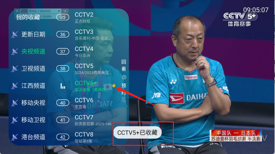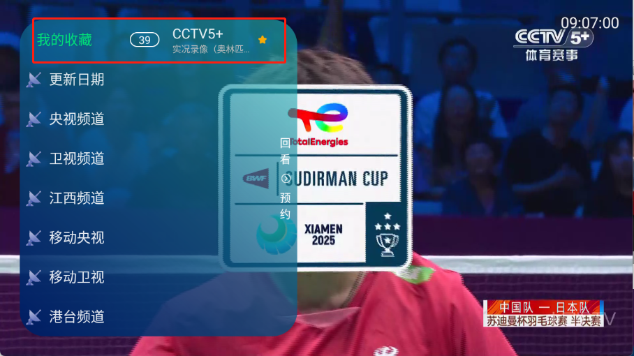 點擊左上角“我的收藏”就可以看到收藏的頻道了。