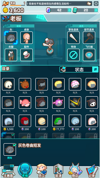 在老板界面,你可以給老板換上各種裝扮,還能配備不同的警告道具。不過這些道具都得用金幣購買,你得攢夠足夠的金幣才能獲取它們哦。