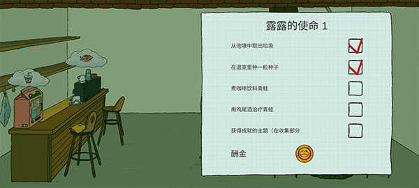 右下角的錦囊百寶袋,能召喚出露露的使命任務,完成對應的任務就會打上勾,全部完成后可獲得豐厚酬金。