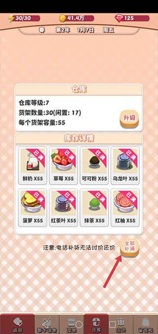 手速快的小可愛要是覺得顧客少,可以額外增加5個顧客,不過記得每次營業前要確保倉庫庫存充足哦