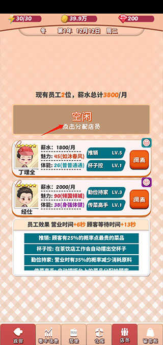 招聘員工后,需點擊“店員”選項,將其分配至所需門店,方可觸發技能。