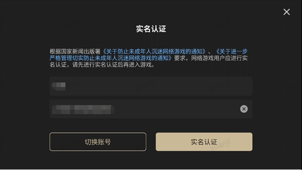 啟動云二重螺旋游戲后,我們首先要完成實名認證這一步驟。