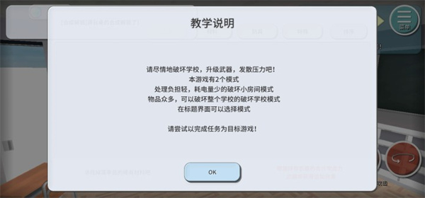 游戲內(nèi)設(shè)有兩種可體驗的模式:一種是破壞小房間模式,它處理負(fù)擔(dān)較輕,耗電量也較少;另一種是破壞學(xué)校模式,該模式下物品豐富多樣,能夠?qū)φ麄€學(xué)校進行破壞。你可以根據(jù)自己的喜好隨意選擇。