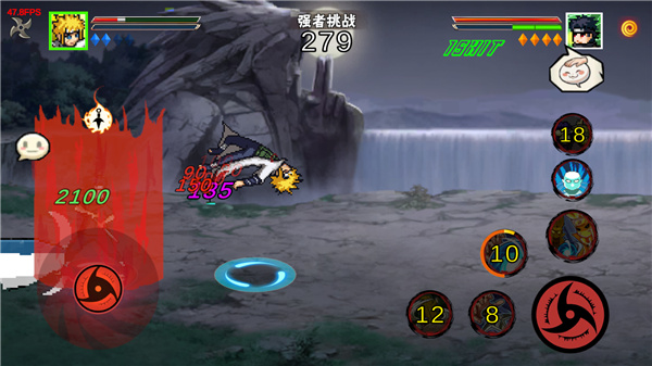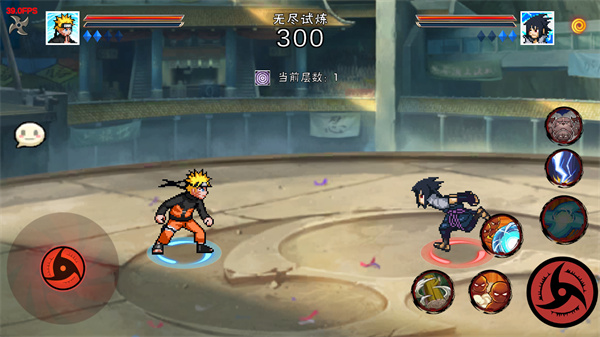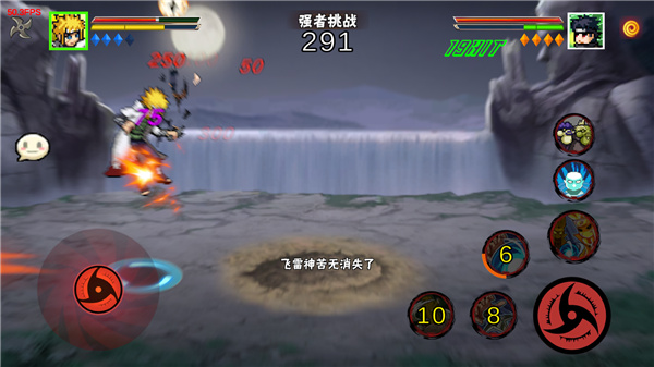 角色的移動可通過左下角的虛擬按鍵進行控制,而右側配備了多個可供使用的忍術。