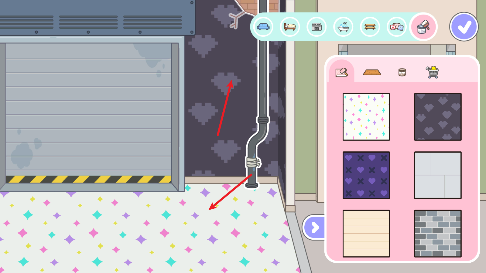 將地板和墻面鋪設(shè)成喜歡的樣子。