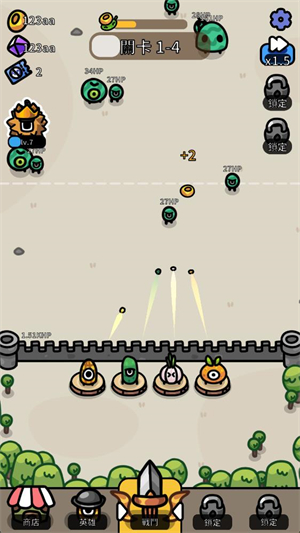 在闖關(guān)時(shí)擊敗敵人能獲取經(jīng)驗(yàn),等級(jí)提升后會(huì)得到升級(jí)點(diǎn)數(shù)。在主界面點(diǎn)擊左側(cè)的榴蓮圖標(biāo),就能進(jìn)入升級(jí)界面,你可以用這些點(diǎn)數(shù)來(lái)強(qiáng)化不同的屬性。