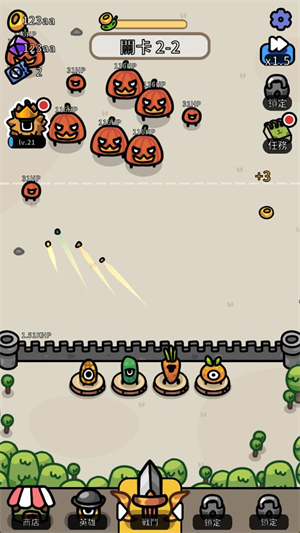 游戲的玩法十分簡(jiǎn)單,派出水果英雄守衛(wèi)你的城堡即可,這些英雄無(wú)需玩家手動(dòng)操控,會(huì)自動(dòng)攻擊范圍內(nèi)出現(xiàn)的敵人。游戲里有不少水果英雄,消耗金幣就能召喚,用得到的鉆石解鎖更多上陣位置來(lái)部署更多英雄,通過(guò)一關(guān)又一關(guān)來(lái)感受新的趣味吧。