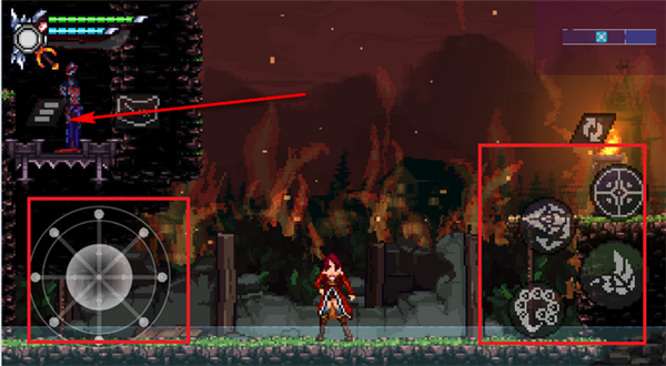 劇情結束后,玩家能夠自由操控角色展開冒險,左下角的按鈕用于控制人物移動,右下角則包含射擊、跳躍以及其他功能按鈕。
