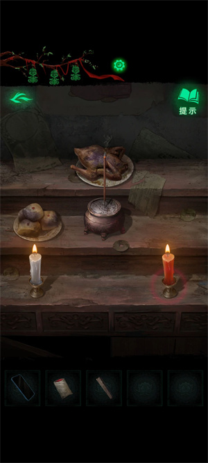 退出當前場景返回村口,觸發(fā)新的劇情;劇情結(jié)束后,把祈福風鈴放置在左側(cè)的風鈴架上,即可獲取門鎖相關(guān)線索。隨后回到村內(nèi)場景,進入2樓并點擊門鎖,輸入剛得到的線索就能解鎖新場景。進入屋內(nèi)后,使用手機獲取線索,接著點擊右側(cè)下方的綠色箱子,會進入一個小游戲(需注意下方箭頭,排列順序是從下往上)。完成小游戲后,左側(cè)有一本賬本,點開它可得到村口屋子祭壇的排列方式,右側(cè)則能獲得朱砂。