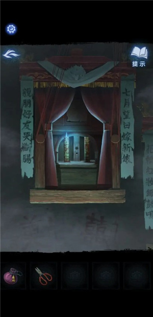首先完成劇情后,按照引導前往魕娘子所在的廟宇。過程中記得收集剪刀、朱砂和蠟燭,在魕娘子左側(cè)有一扇窗戶,務(wù)必進入,這是后續(xù)解密的關(guān)鍵。接著跟隨蓋頭前往六藏菩薩處,先在天花板上的轎子內(nèi)放置蠟燭,之后就能左右滑動查看其他轎子。每個轎子下方的提示基于其左右兩側(cè)題文的差異,大致閱讀一遍即可分辨出喜嫁與喪葬主題,只需點亮喪葬題文對應(yīng)的那一側(cè)蠟燭即可通關(guān)。