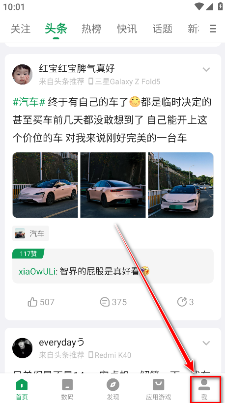 打開酷安,點擊右下角 “我” 進入個人中心。