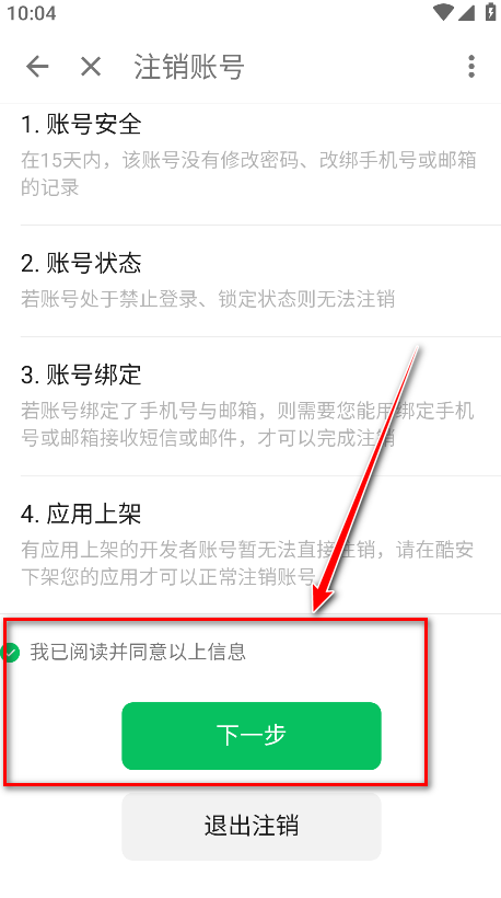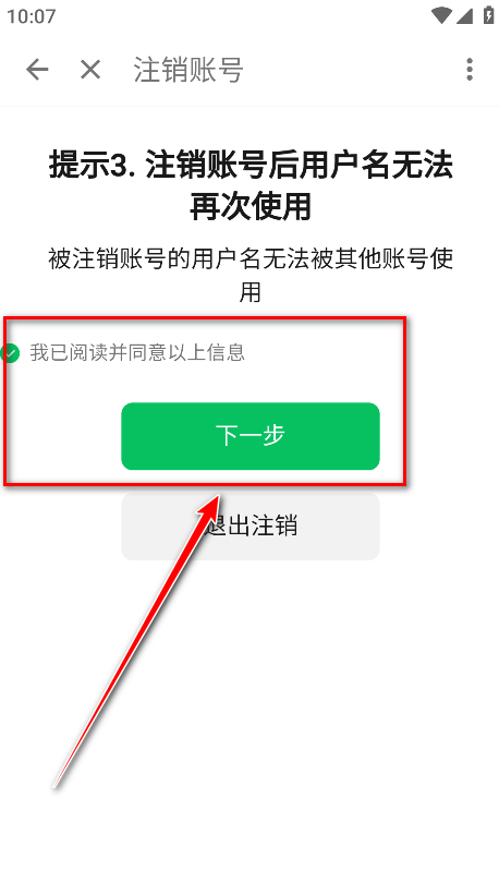 勾選我已閱讀并同意以上信息,點擊確認注銷。