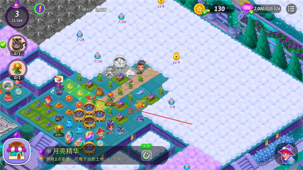 收集月亮的精華,用來治愈土地,擴大可操作的區域,為合并元素騰出空間。