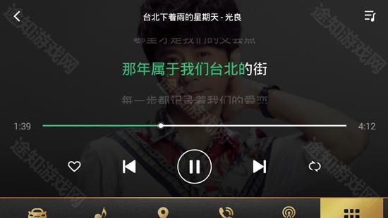 登錄后回到首頁,最醒目的版塊展示著當前播放的音樂,點擊該版塊即可進入對應的歌曲播放詳情頁。在詳情頁中,不僅能看到歌詞和播放進度,還能對歌曲執行收藏、暫停、刪除操作,也可以切換至上一首或下一首歌曲。