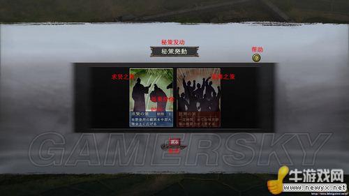 在這張圖上是兩種策略的并列,可以知道,在正式版中存在著這么兩種秘策:1.在戰(zhàn)場上發(fā)動的,諸如歸陣之策的“戰(zhàn)策”;