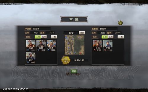 長安做為我的生產(chǎn)基地,兵馬只有4000,而且都是一些種田的武將。并且后方能派出的援軍也只有3000。