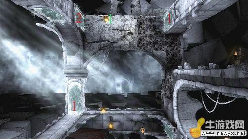 進(jìn)入后會從上方的門出現(xiàn),先開啟眼前的手把綠1,再從前面的門2進(jìn)入,