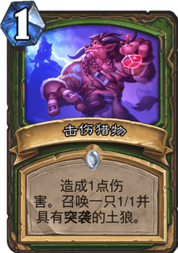效果:造成1點傷害。召喚一只1/1并具有突襲的土狼