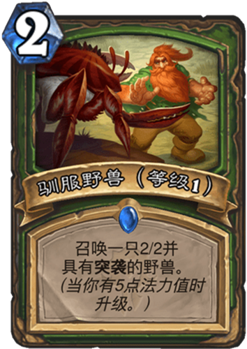 效果:召喚一只2/2并具有突襲的野獸(當(dāng)你有5點法力值時升級)
