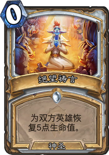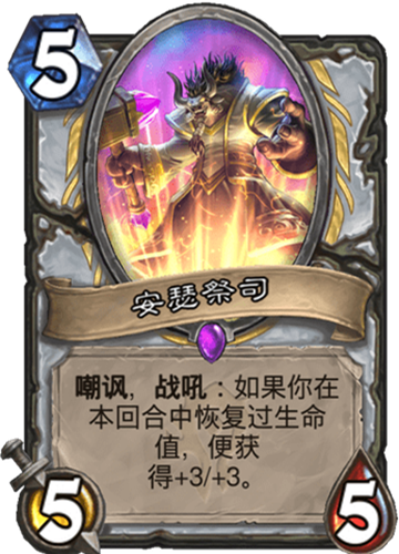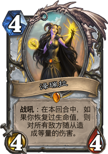 效果:戰吼——在本回合中,如果你恢復過生命值,則對所有敵方隨從造成等量的傷害