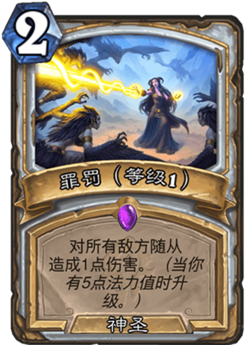 效果:對所有地方隨從造成1點傷害(當你有5點法力值時升級)