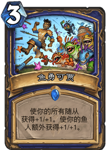 效果:使你的所有隨從獲得+1/+1。使你的魚人額外獲得+1/+1