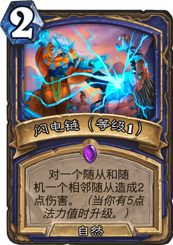 效果:對一個隨從和隨機一個相鄰隨從造成2點傷害(當你有5點法力值時升級)