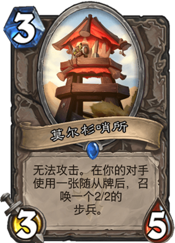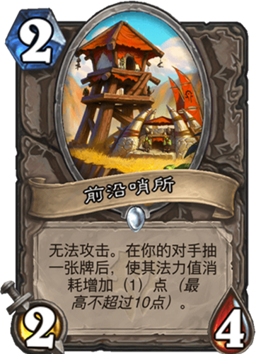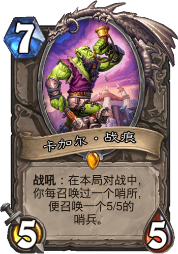效果:戰吼——在本局對戰中,你每召喚過一個哨所,便召喚一個5/5的哨兵